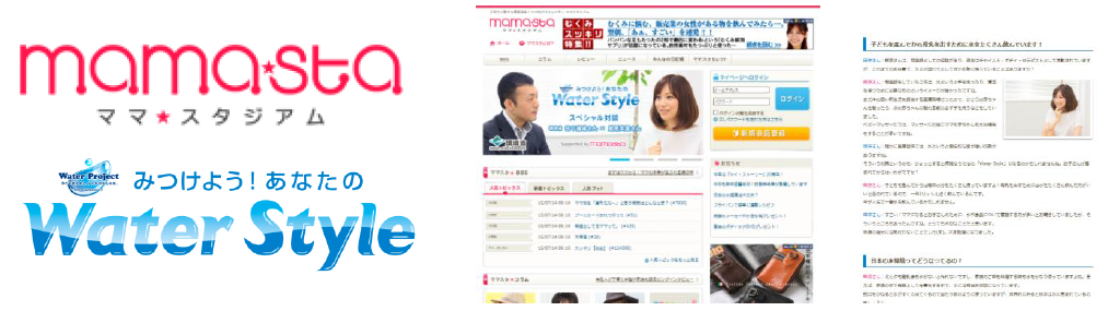 毎日の生活で、特に水との関わりが多い主婦層へ向けた情報発信として、大手ママ向けサイト「ママスタジアム」と連携し、チャイルド・ボディー・セラピストとして活動されている「蛯原英里」さんとの「Water Style」特集を7月10日より掲載しています。