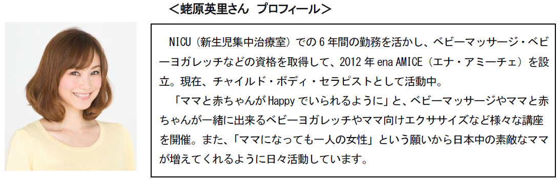 また、「Water Day FESTIVAL」では蛯原英里さんにご来場頂き、ママの視点から「身近なWatere Style」について、来場者に向けて分かりやすくお話いただきます。