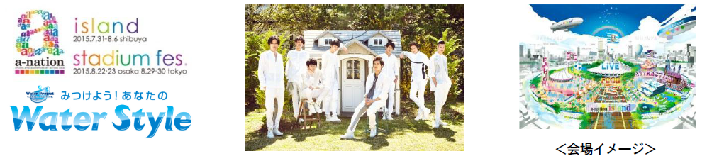 エイベックスが主催する「a-nation2015」(代々木公園)では、8月1日(土)にa-nationの「Water Style」として、若者に人気で昨年の日本レコード大賞「新人賞」を受賞したSOLIDEMO(ソリディーモ)によるステージ上からのa-nation流「Water Style」アクションを実施して頂きます。