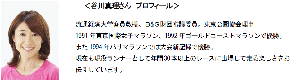 そこで、スポーツや運動などを通した水との関わりについて、マラソンランナーの谷川真理さんにご来場いただき、自身の水に関わるエピソードや毎日の生活で取り組まれているWater Styleについてお話頂きます。