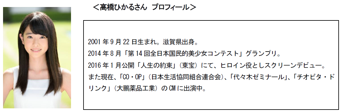ウォータープロジェクトのスペシャルサポーターとして、高橋ひかるさん(オスカープロモーション)所属)が来場します。